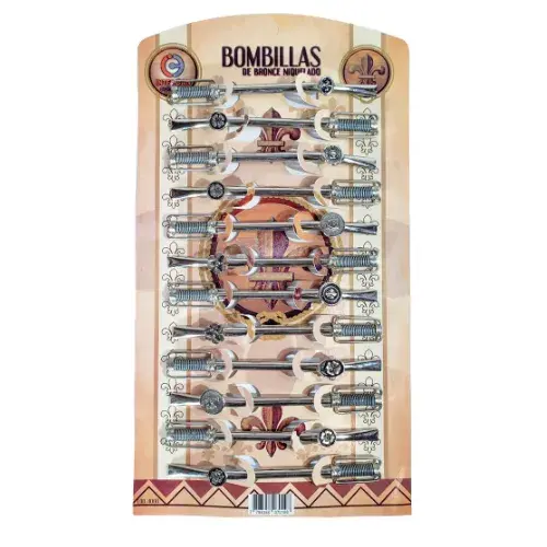 Bombillas Bronce Niquelado B/ Estribo C/Dije Blister x 12 unidBombillas Bronce Niquelado B/ Estribo C/Dije Blister x 12 unid$ 36.848,00 IVA Incluido